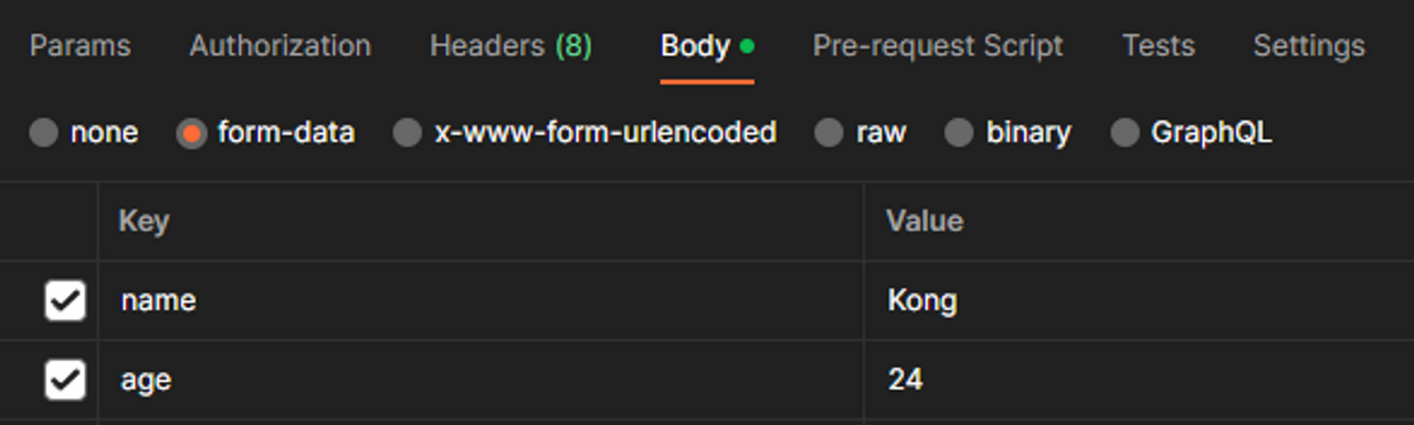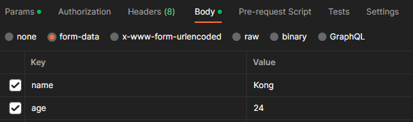 결론적으로 value에는 요청에서 name이라는 키와 매칭되는 값인 Kong이 들어간다.