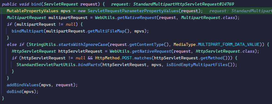 쭉 따라들어가면 mpvs를 만드는데 mpvs는 사용자의 요청에 대한 정보인 PropertyValue를 List로 가지고 있다. (mpvs=[PropertyValue(name="name", value="Kong"), PropertyValue(name="age", value="21")])